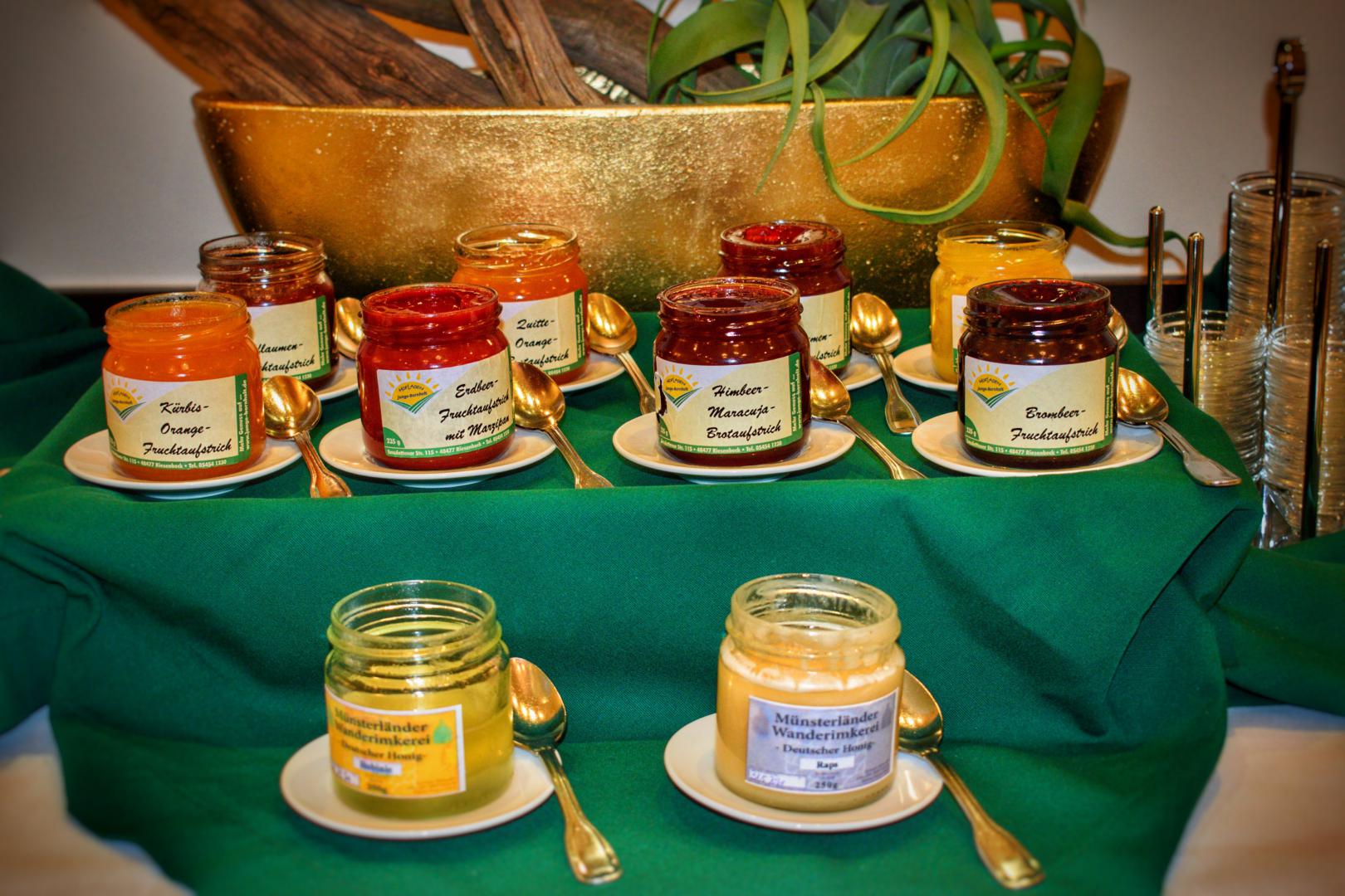 Wir bieten ein westfälisches und internationales Frühstück mit varriierender Gerichteauswahl.
