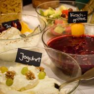 Für unsere Hotel-, sowie externen Gäste bieten wir ein leckeres, ausgewogenes und reichhaltiges Frühstücksbüffet an.